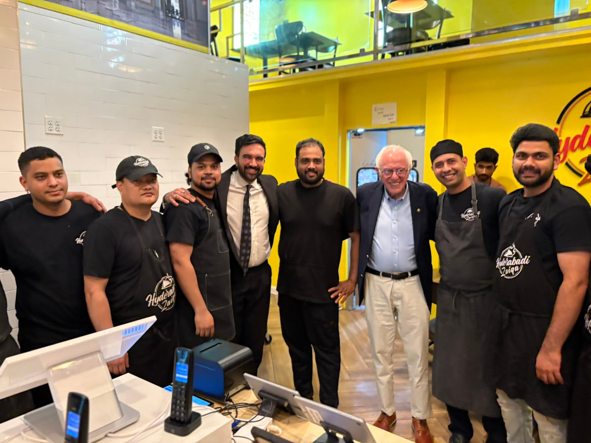 The progressive peanut gallery piled on: Gustavo Rivera, Julia Salazar, Emily Gallagher, Marcela Mitaynes, Jordan Wright, Grace Lee, Tony Simone, Tiffany Cabán, Sandy Nurse, a brigade of state legislators whose combined achievements include sponsoring more Instagram Live sessions than actual bills. Andrea Stewart-Cousins, the Senate Majority Leader, hovered in the wings like a chaperone at a middle school dance, while Letitia James, the Attorney General with more grudges than a Sopranos episode, clapped politely but eyed the crowd like they might sue her next. And for that dash of national flavor, Bernie Sanders helicoptered in from his Burlington bungalow, looking every bit the rumpled grandpa who'd forgotten his Werther's Originals, and Alexandria Ocasio-Cortez, the bartender-turned-congresswoman who showed up to remind everyone she's still the queen of the viral soundbite.